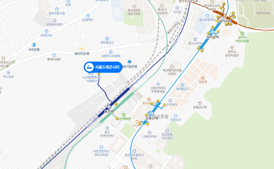 서울 드래곤 시티는 지하철 1호선 용산역(3번출구)에서 도보 3분 거리에 위치하고 있습니다. 용산역에서 서울 드래곤시티까지 연결되는 연결통로를 이용하여 주시기 바랍니다.