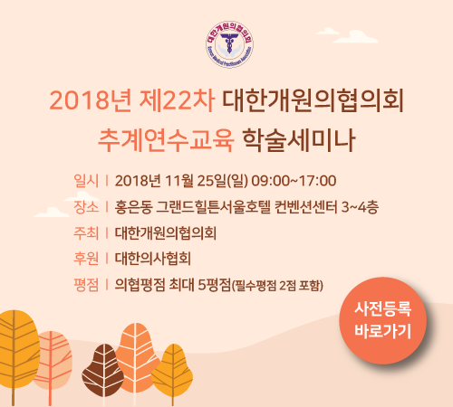 제22차 대한개원의협의회 추계 연수교육 안내_[필수평점2점 포함]_2018년 11월25일(일)