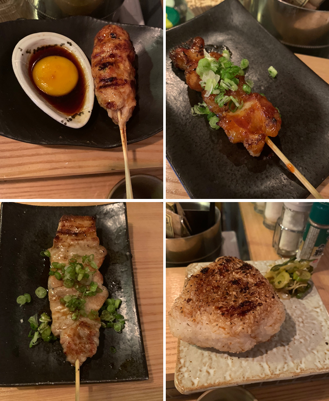 < 사진(왼쪽 상단부터 시계방향) ; 닭날개구이, 네기마(대파닭다리살구이). 난코츠(연골구이), 목살구이 >